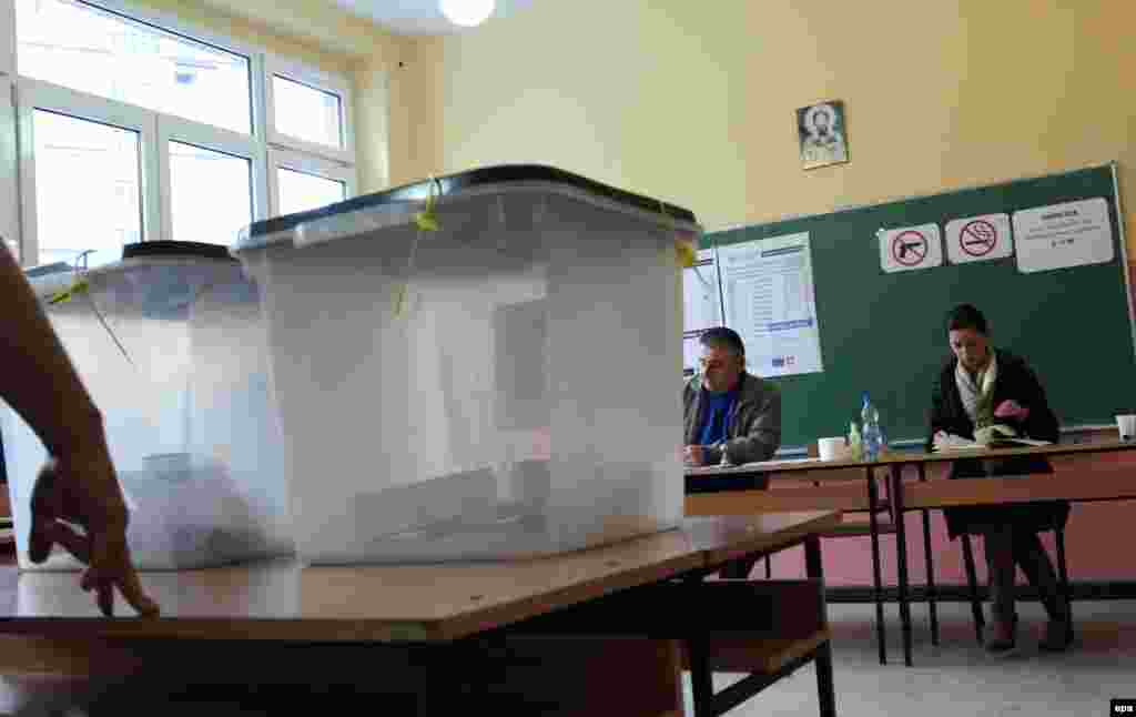 U severnom delu Mitrovice u nedelju se u tri biračka centra uz jake mere bezbednosti održavaju ponovljeni izbori za gradonačelnika i lokalnu skupštinu. 17. novembar 2013.