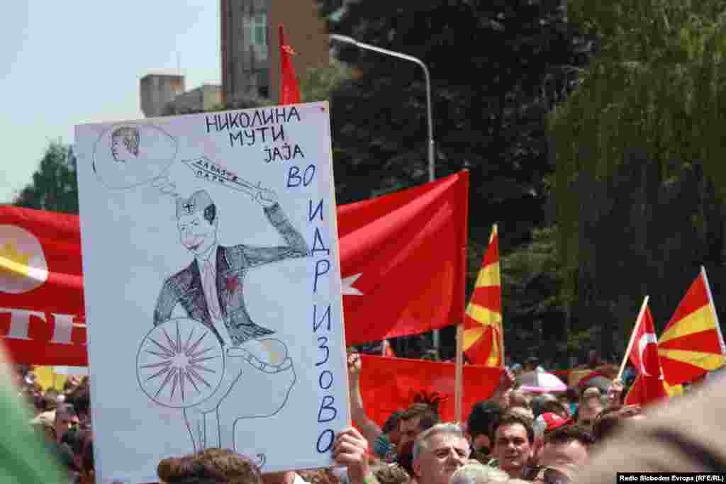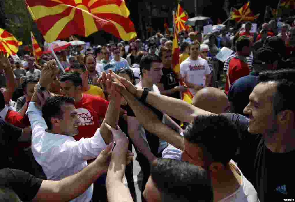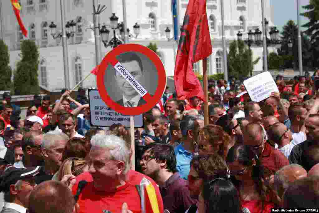 Na hiljade ljudi iz svih krajeva Makedonije okupilo se u nedelju ispred Vlade u skoplju zahtevajući ostavku premijera Nikole Gruevskog. Protest je organizovala najveća opoziciona partija SDSM uz podršku nevladinih organizacija i studenata.