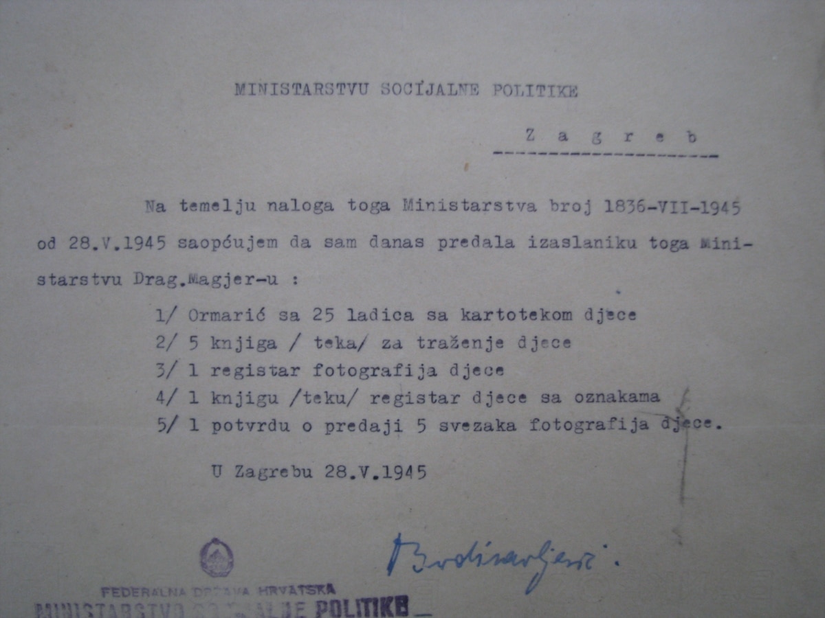 Crvenog križa Hoferu. Budući da se sada radilo o oslobođenoj djeci, mislila sam da će se Crveni križ za njih pobrinuti. Direktor je to odlučno odbio, ali mi je preporučio da se obratim predstojniku Odjela za zaštitu djece u Ministarstvu