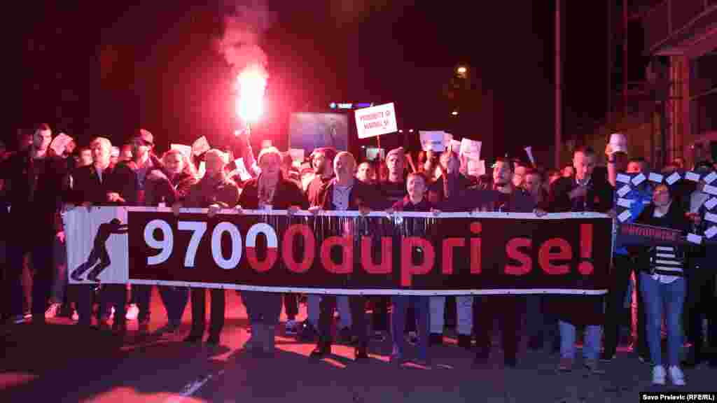 "Mi nismo opasnost. Ako hoćete da štitite ovu državu, dođite ovdje sa nama. Opasnost su oni koji uništavaju državu 30 godina", rekla je profesorica Marija Backović obraćajući se policiji na protestu u subotu pred više od 10.000 građana u Podgorici, na četvrtom potestu "97 hiljada – Odupri se".
