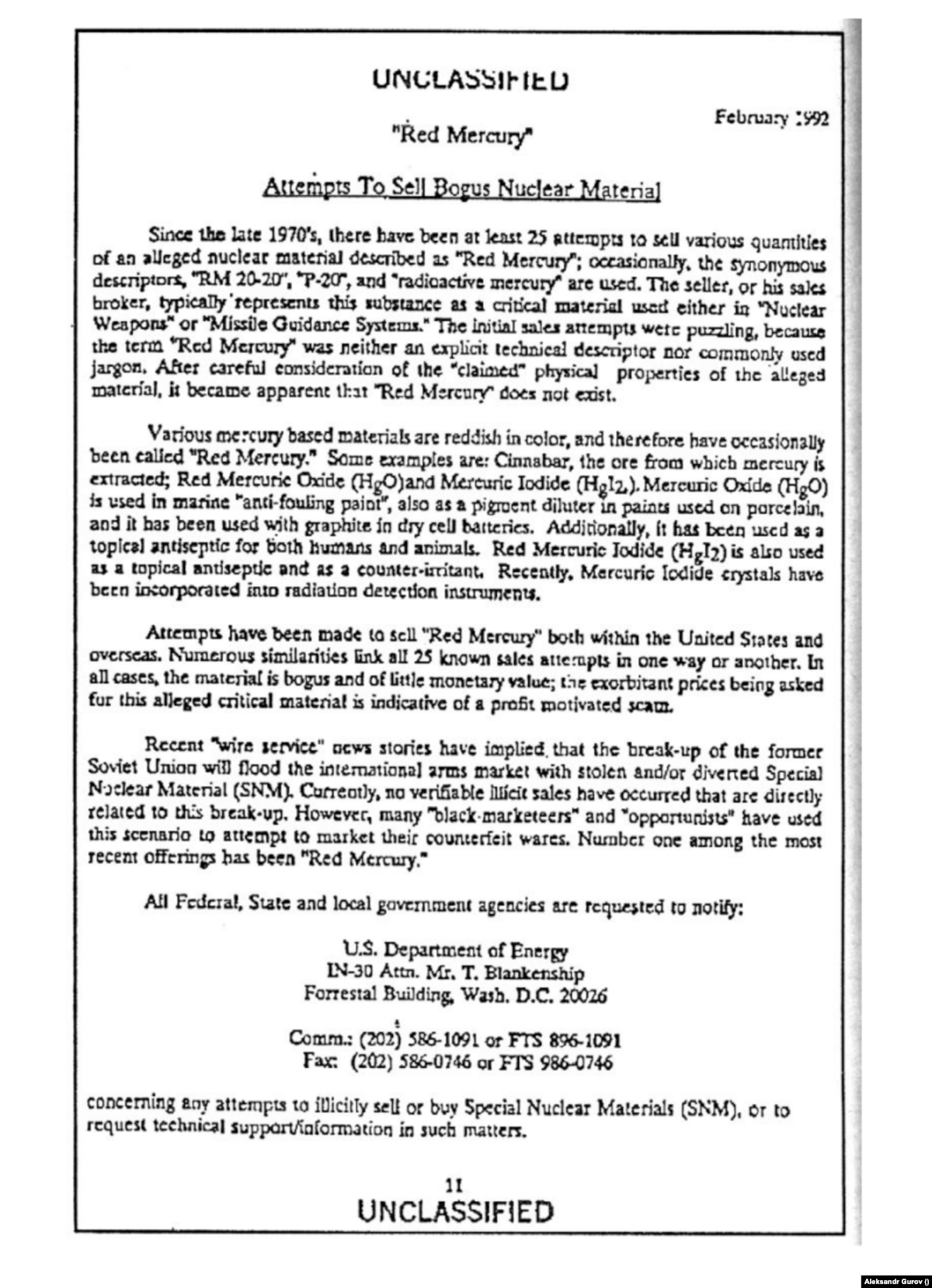 U oktobru 1992. specijalna komisija na čelu sa potpredsednikom Aleksandrom Ruckojom naredila je svim vladinim agencijama da prestanu da razmatraju zahteve za izvoz crvene žive i konačno saopštila da ta supstanca - jednostavno ne postoji.