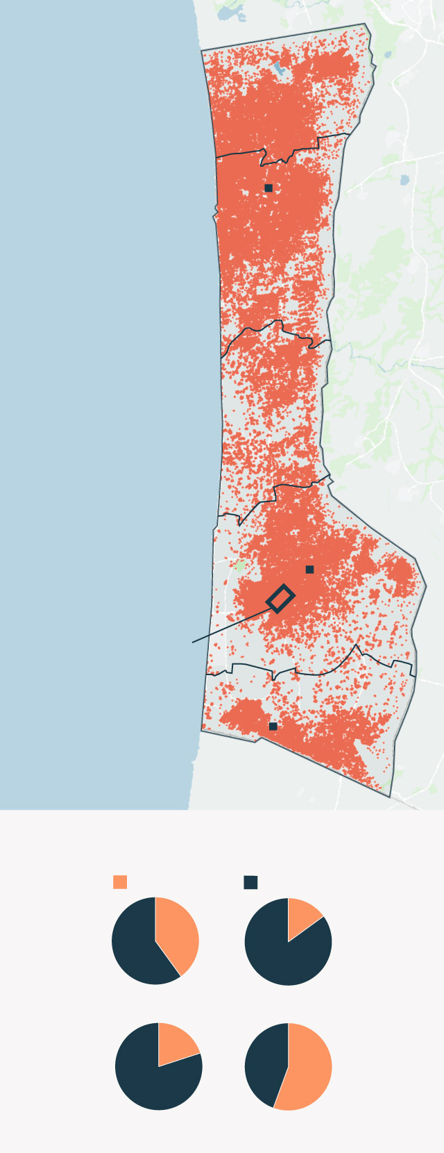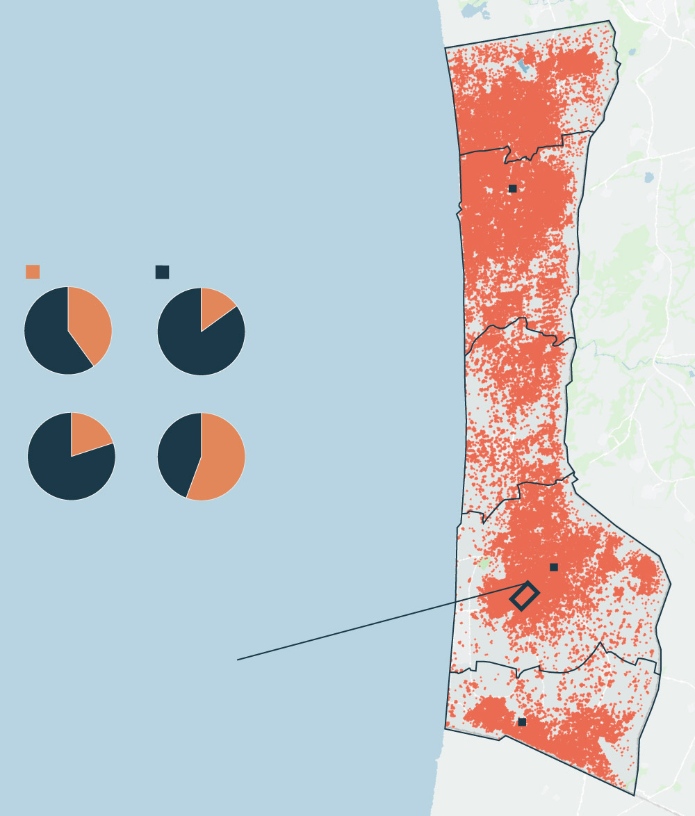 Prema Satelitskom centru Ujedinjenih nacija (UNOSAT), otprilike 66% građevina u Gazi oštećeno je od 7. oktobra 2023.