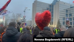 Grupa demonstranata okupila se pred uključenje uživo ekipe Radio-televizije Vojvodine sa protesta, nezadovoljna izveštavanjem javnog servisa.
