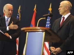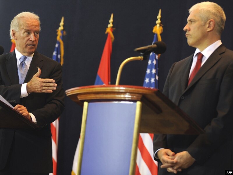 Bajden: “Gospodine predsedniče kao što znate administracija Baraka Obame je upravo završila svojih prvih sto dana na vlasti. Mi smatramo da je veoma važno već na samom početku našeg mandata da dođemo na Balkan, da dođemo u Srbiju, da pokažemo koliko nam je stalo do ovog regiona.”