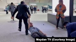 Nakon što su zaštitari primili naredbe za djelovanje, Mammadli je odveden.