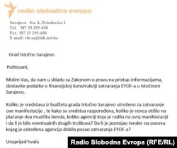 Kada je u pitanju ceremonija zatvaranja EYOF-a, iz Gradske službe Istočno Sarajevo do dana objave ovog teksta nisu odgovorili na upit RSE - na šta je tačno potrošeno oko 125.000 eura odvojenih iz budžeta ovog grada.