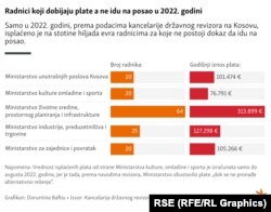U izveštaju za 2022. godinu se navodi da je revizor upozorio nekoliko ministarstva da zaposleni dobijaju plate a ne obavljaju posao predviđen ugovorom o radu.