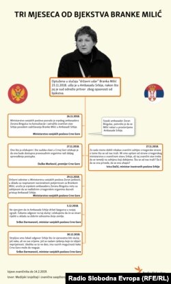 U međuvremenu, Podgorica je očekivala reakciju Beograda kako bi Branka Milić bila dostupna crnogorskom pravosuđu, ali je srpska strana od početka tvrdila da je na potezu Crna Gora.