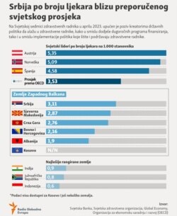 Srbija po broju ljekara blizu preporučenog svjetskog prosjeka