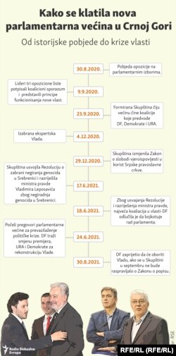 Podsjetimo, 30. avgusta, navršava se godina od parlamentarnih izbora u Crnoj Gori na kojima je, nakon tri decenije, smijenjena vlast Demokratske partije socijalista Mila Đukanovića. Na tim izborima premijer Zdravko Krivokapić je bio nosilac najjače koalicione liste, koju je predvodio prosrpski Demokratski front, a na predlog Srpske pravoslavne crkve.