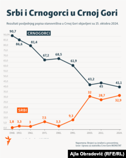 "Sada kada su se 'vratili', imate tu promjenu. Prema tome, broj Srba u Crnoj Gori je stabilan, to je nešto ispod trećine (32,9 odsto). Tako je bilo prije 20 godina, tako je i danas", objašnjava Bešić za Radio Slobodna Evropa.