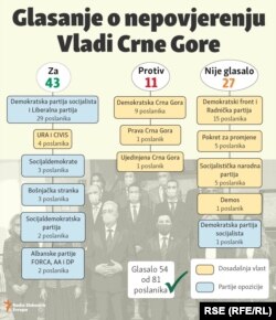Za obaranje Krivokapićeve Vlade glasale su sve opozicione partije predvođene Demokratskom partijom socijalista Mila Đukanovića i članice dosadašnje vladajuće većine Građanski pokret URA i Civis.