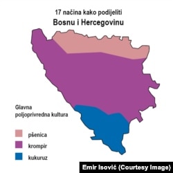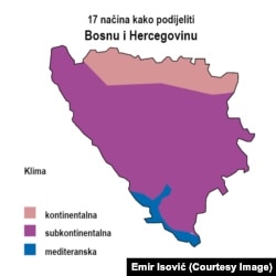 U njegovom viđenju Bosne i Hercegovine, zemlja je podijeljena, primjerice, i po vremenskim prilikama.
