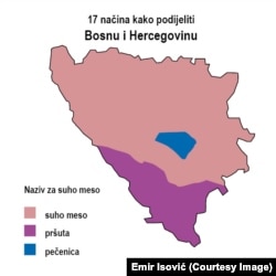 "Zemlje su dijelili i dijele na nekim drugim mjestima. To je jedan kulturološki pogled na ovu našu zanimljivu geografiju u kojoj živimo, što mi kažemo u Bosni šprdancija", kaže Isović za RSE.
