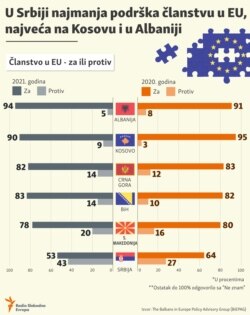 U Srbiji najmanja podrška članstvu u EU, najveća na Kosovu i u Albaniji