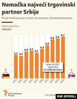 Osim zemalja EU, među prve tri države po vrednosti izvoza 2021. godine našla se Bosna i Hercegovina, a 2017. Severna Makedonija.