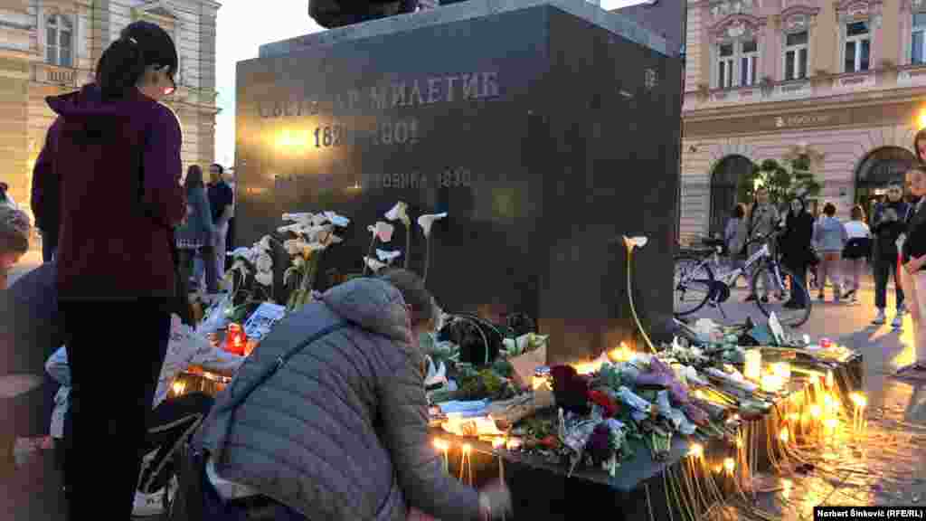 Građani Novog Sada pale sveće i ostavljaju cveće, poruke i igračke na glavnom trgu 5. maja odajući tako počast žrtvama masovnih ubistava u Srbiji. Osmoro dece i radnik obezbeđenja ubijeni su u sredu u oružanom napadu 13-godišnjeg učenika u beogradskoj Osnovnoj školi "Vladislav Ribnikar". Šestoro učenika i nastavnica su ranjeni. U selima Malo Orašje i Dubona kod Mladenovca, napadač je 4. maja uveče ubio osam osoba i ranio 14.