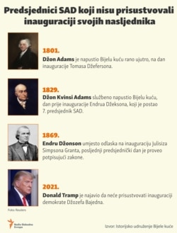 Kršeći tradiciju po prvi put od 1869. godine američki predsjednik neće učestvovati u procesu inauguracije.
