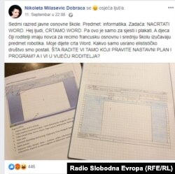 "Postoji nastavni plan i program koji jednostavnim ukucavanjem u Google mi roditelji možemo da iščitamo za sedmi razred. Unutar tog nastavnog plana i programa piše da se Word obrađuje, ne znam, sedam časova, tri časa je to učenje o njemu, četiri ponavljanje, ovo sad parafraziram, ali na taj način piše nastavni plan i program i svako ga može pogledati. Da ulazimo sada u metodu crtanja, načina izrade zadaće, to zaista nije pitanje ni zakonski dozvoljeno Vijeću roditelja", kaže ona.