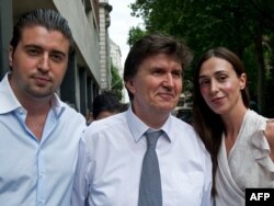 Ejup Ganić sa sinom Emirom i ćerkom Eminom ispred Westminsterskog suda nakon donošenja odluke, 27. jul 2010.