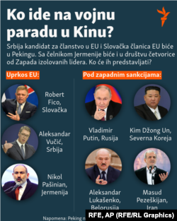 Milan Igrutinović iz beogradskog Instituta za evropske studije primećuje za RSE da je na prethodnoj vojnoj paradi 2015. u Pekingu bilo više državnika, pre svega zapadnih.
