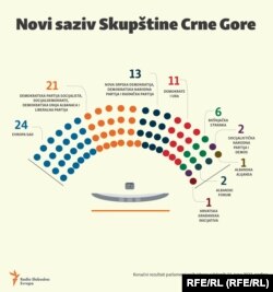Nakon Pokreta Evropa sad, koji je osvojio 24 manata, lista na čelu sa Demokratskom partijom socijalista dobila je 21, prosrpska koalicija nedavno rasformiranog Demokratskog fronta 13 a dva mandata manje Demokrate i URA u zajedničkom nastupu.