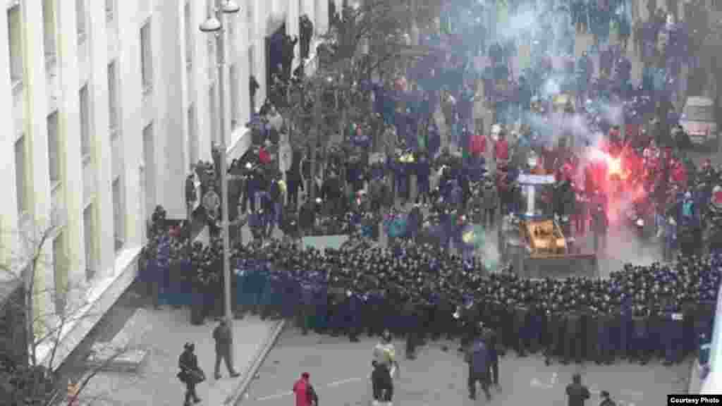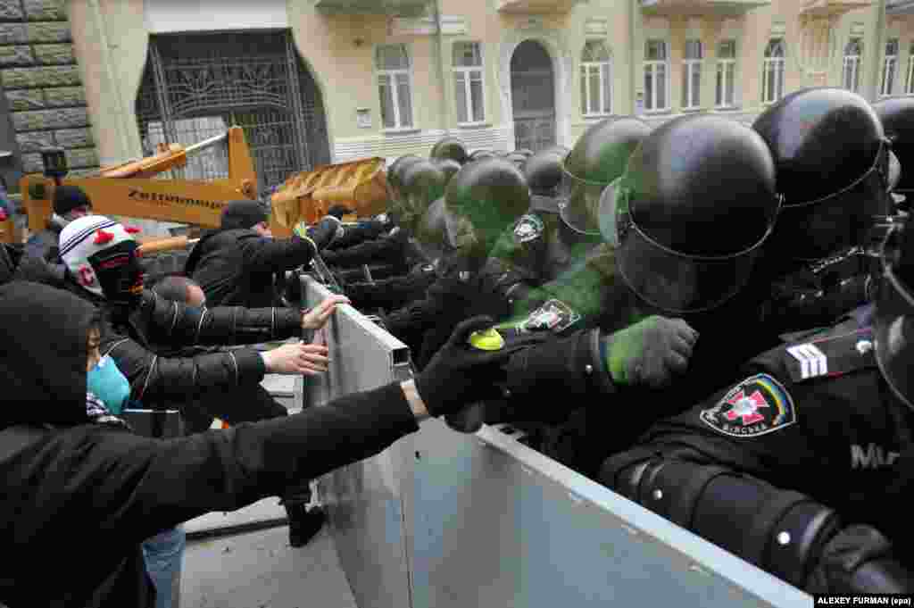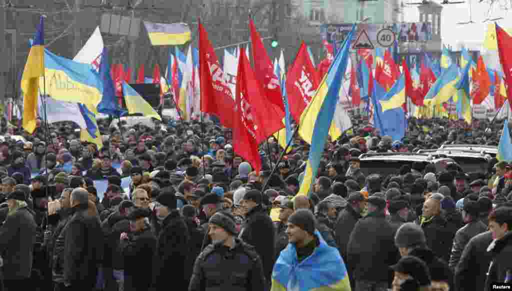 Desetine hiljada antivladinih demonstranata okupile su se u nedelju u Kijevu u znak protesta protiv odbijanja potpisivanja sporazuma o pridruživanju sa Evropskom unijom, izveštavaju agencije, uprkos zabrani okupljanja koju je izdala policija. Predvode ih lideri opozicije, koji traže ostavke vlasti. 1. decembar 2013.