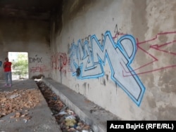 Objekat je bez prozora, a pored njega su vidjivi ostaci smeća. Migranti kažu da ponekad u objekat dođe i neki pas lutalica.