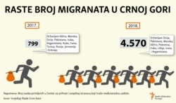 “Do sada je u Crnu Goru ušlo i smješteno, u naše centre za prihvat, preko 7.000 migranata. A zahtjev za međunarodnu pravnu zaštitu podnijelo je preko 1.000 migranata. Međutim, Crna Gora nije krajnja destinacija migranata, već oni Crnu Goru gledaju kao tranzitnu destinaciju, a glavna destinacija im je Evropska Unija (EU). Tako da mi sada trenutno u Crnoj Gori imamo oko 300 migranata", rekla je direktorica Direktorata za građanska stanja i lične isprave MUP-a Milanka Baković za Televiziju Crne.