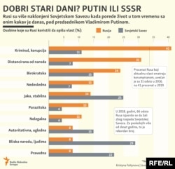 Poslednjih godina, međutim, ankete rutinski pokazuju da više od polovine svih građana Rusije veruje da je raspad Sovjetskog Saveza trebalo izbeći, što se odrazilo u Putinovoj otvorenoj jadikovki za sovjetskom prošlošću.