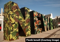 Svako slovo na spomeniku je prekriveno šarama koje identifikuju vojsku NATO zemalja.