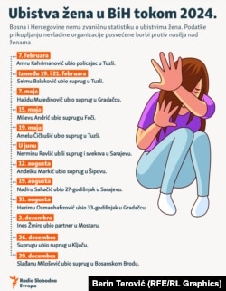 BiH nema potpune, zvanične podatke o broj žrtava femicida, a iz organizacija civilnog društva procjenjuju da se radi o oko 11 ubistava godišnje.