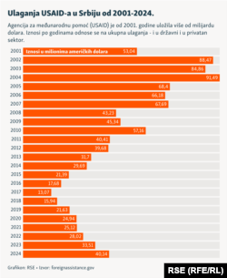 Od početka dvehiljaditih do danas, USAID je u Srbiju uložio više od milijardu dolara, podaci su sa sajta američkog State Departmenta i USAID-a o inostranoj pomoći.