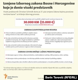 Propisane su i novčane kazne u iznosu do 30.000 maraka (15.321 euro) za kršenje Izbornog zakona BiH koje su time utrostručene u odnosu na dosadašnje.