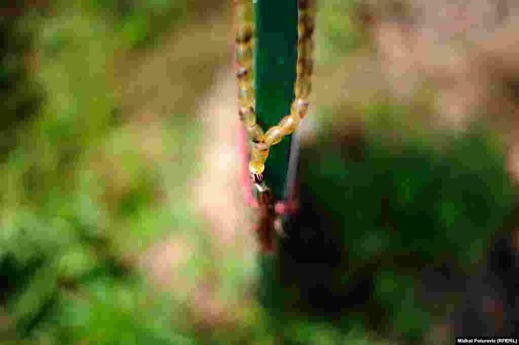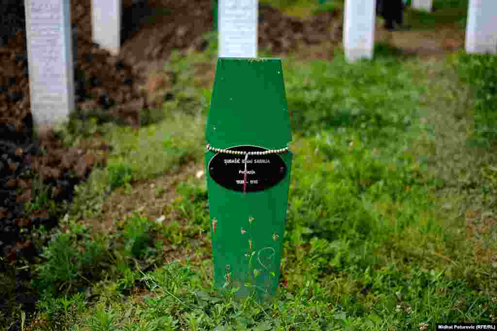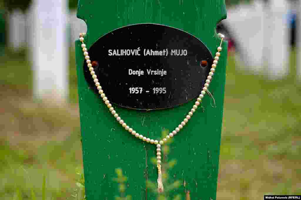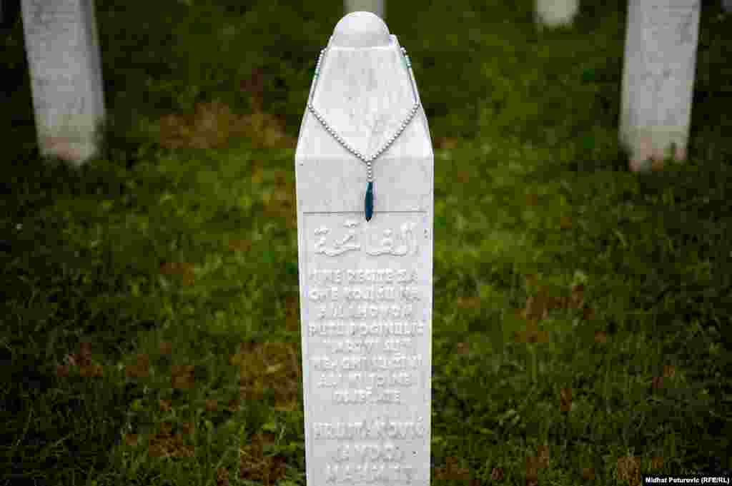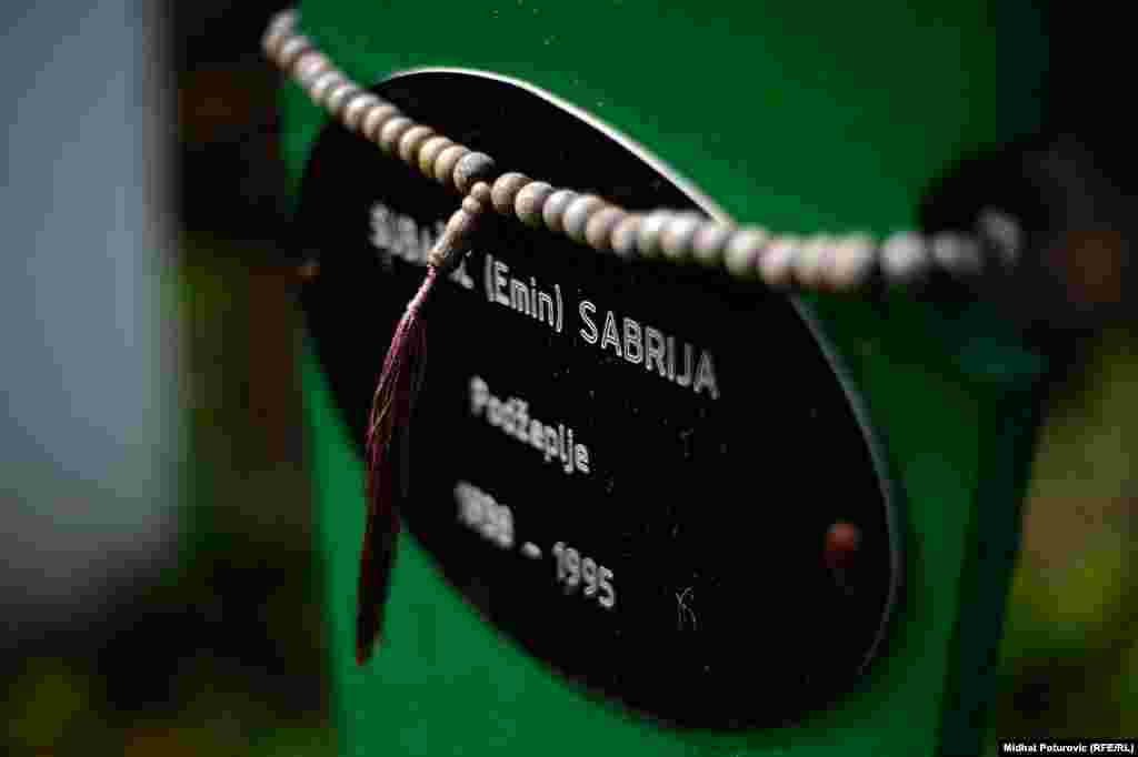 Dan nakon obilježavanja 19. godišnjice genocida nad Bošnjacima u Srebrenici, povremeni cvrkut ptica naruši tišinu u Potočarima gdje pažnju privlače nišani na kojima su ostavljeni tespihi korišteni tokom molitve svih ovih godina. Od 8.372 imena, uklesanih na spomen-ploču na mezarju u Potočarima, ostalo je još oko hiljadu duša koje čekaju na konačan smiraj. RSE/Foto: Midhat Poturović