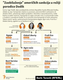 Ministarstvo financija SAD-a je saopćilo da je sankcioniralo "Prointer ITSS", "Infinity Media", "K-2 Audio Company", "Sirius 2010", "Una World" i "Kaldera Company", jer "osiguravaju značajne izvore prihoda" porodici ranije sankcioniranog proruskog predsjednika ovog entiteta Milorada Dodika.