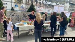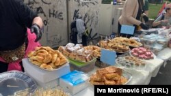 U ulici Kneza Miloša građani su postavili stolove sa hranom, koju poslužuju svima koji se priključuju protestu.