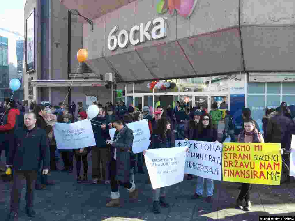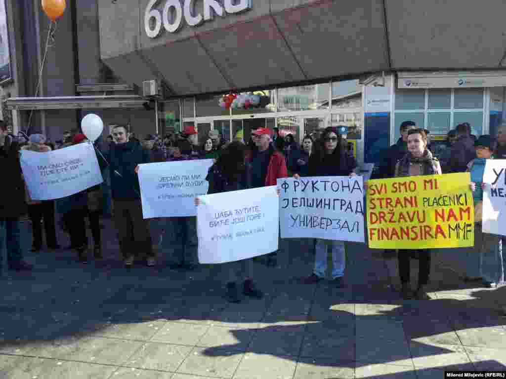 Više od 150 građana Banjaluke okupilo u centru grada kako bi protestom podržali demonstracije u drugim gradovima. Banjalučani su istakli da su problemi građana isti u cijeloj BiH. 7. februar 2014.