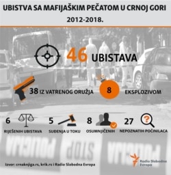 Po podacima iz "Crne knjige" RSE i agencije Krik, baze ubistava izvedenih na teritoriji Srbije i Crne Gore koja su imala odlike mafijaških likvidacija, od 2012. godine na ovaj način stradalo je 157 ljudi, od čega je svega 13 slučajeva pravosudno rešeno.