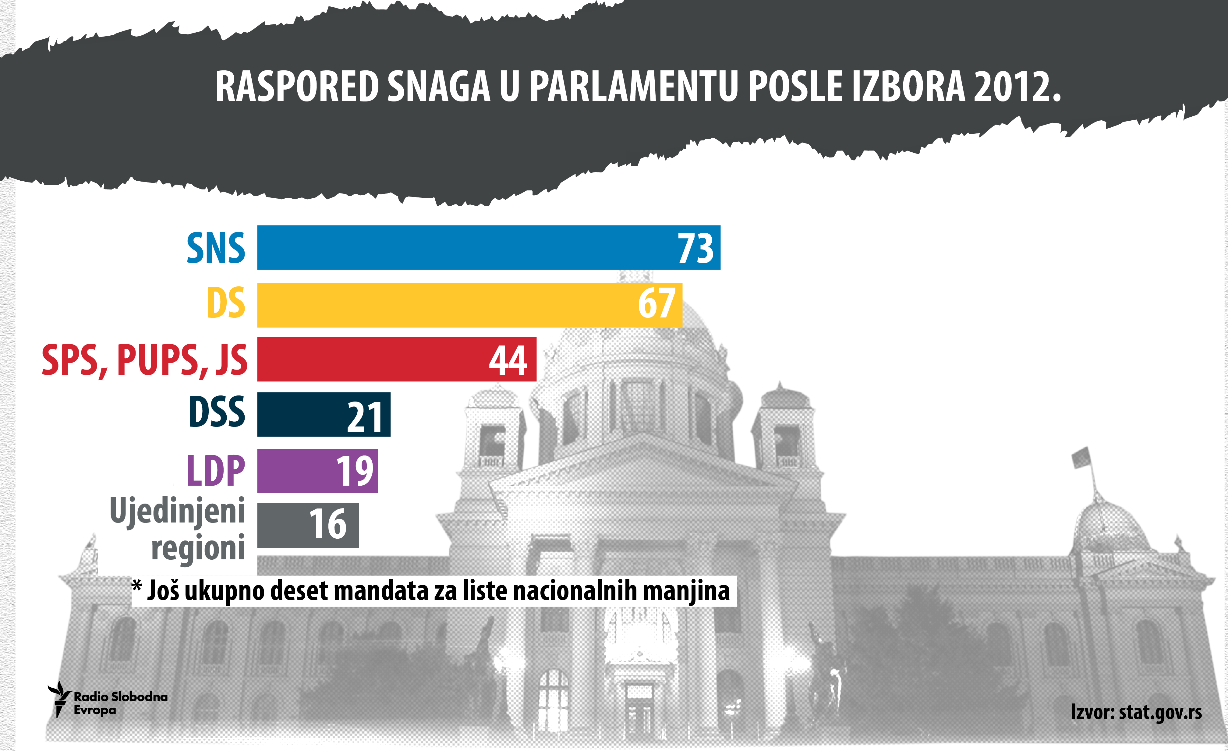 Koalicija oko Demokratske stranke osvojila je najviše mesta u Parlamentu. Ipak, nedovoljno za većinu i izglasavanje Vlade. Dogovor o koaliciji napravile su sa Socijalističkom partijom Srbije. Na izbornoj listi „Za evropsku Srbiju“, uz Demokratsku stranku u koaliciji su bili još G17 plus, Sandžačka demokratska partija, SPO, Liga socijaldemokrata Vojvodine i Srpska lista za Kosovo. Radikali su bili druga sledeća po snazi stranka u Parlamentu.