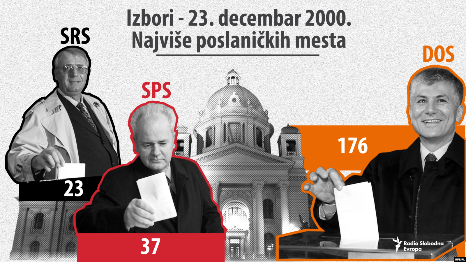 Dva i po meseca nakon petooktobarskih promena, koalicija stranaka okupljena oko političkog bloka DOS, osvojila je ubedljivu većinu – 176 od ukupno 250 poslaničkih mesta u Skupštini Srbije. Na izbore je izašlo 57,64 odsto biračkog tela. Od 3,75 miliona glasača, DOS je zaokružilo više od 2,4 miliona građana Srbije.
