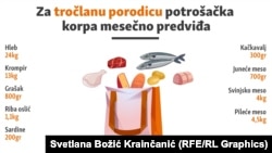 Prema podacima Republičkog zavoda za statistiku, za prosečnu potrošačku korpu potrebno je 853 evra, dok prosečna plata iznosi 730 evra.