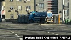 Uoči blokade u blizini Autokomande postavljena je cisterna sa vodom, mobilni toaleti i kante za smeće.