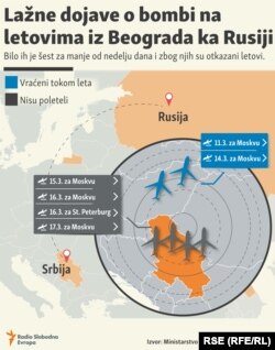 Predsednik Srbije Aleksandar Vučić 17. aprila je rekao za TV Pink da u lažnim dojavama o bombama u avionima za Moskvu učestvuju strane službe sa teritorije dve zemlje, a prema njegovim rečima, jedna je zemlja Evropske unije (EU), a druga je Ukrajina.
