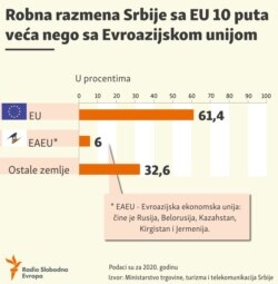 Robna razmena Srbije sa EU deset puta veća nego sa Evroazijskom ekonomskom unijom