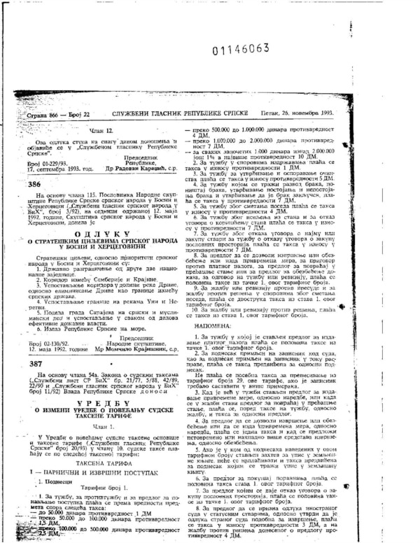 Na samom početku rata u Bosni i Hercegovini, 12. maja 1992. godine Momčilo Krajišnik, predsjednik Narodne skupštine Republike Srpske, potpisao je “Odluku o strateškim ciljevima srpskog naroda u Bosni i Hercegovini”, objavljenu 26. novembra 1993. u Službenom glasniku Republike Srpske.