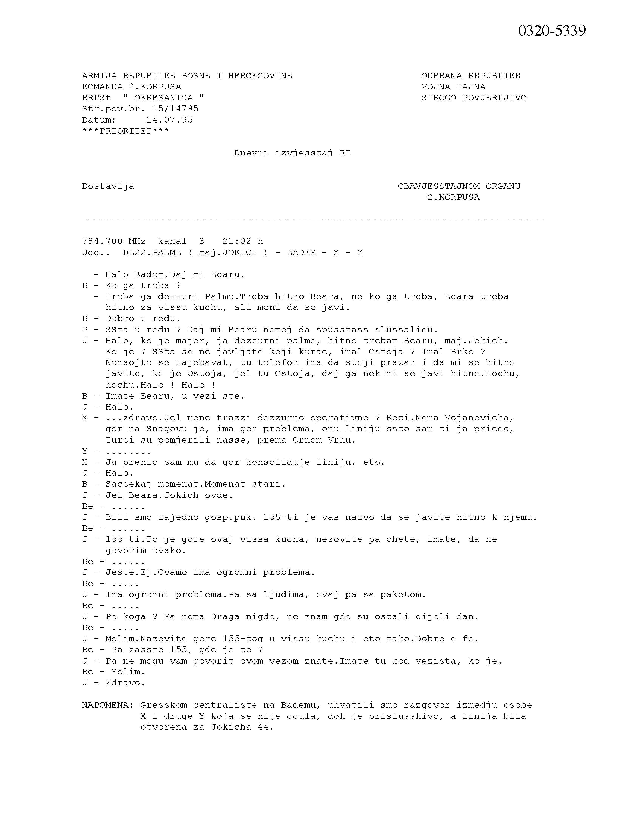 Istog dana u još jednom presretnutom razgovoru dvije neidentifikovane osobe razgovaraju o “njihovim” vojnicima koji su pobjegli u šume.
