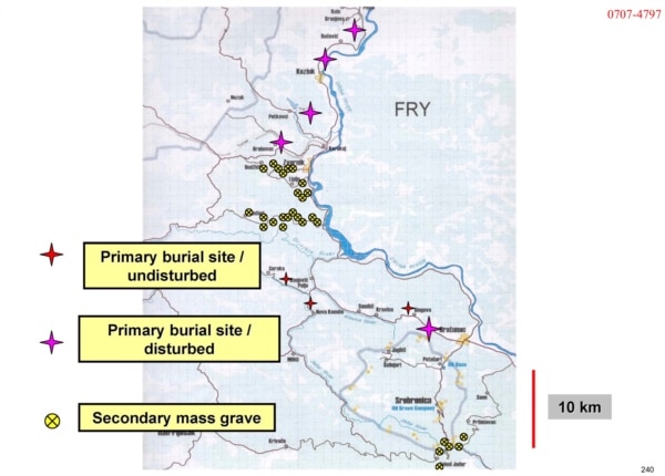 Dokumenti koje je na suđenjima izložio i Jean-Rene Ruez, istražitelj Haškog tužilaštva od 1995. do 2001. pokazuju da su lokacije sa ostacima ubijenih žrtava genocida prekopavane.