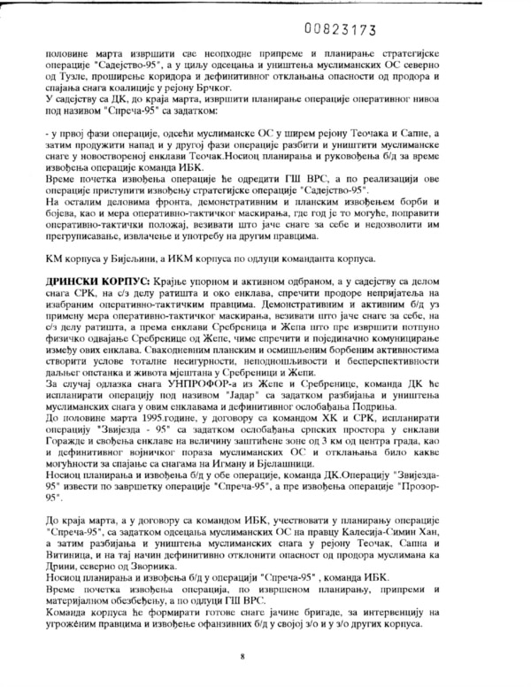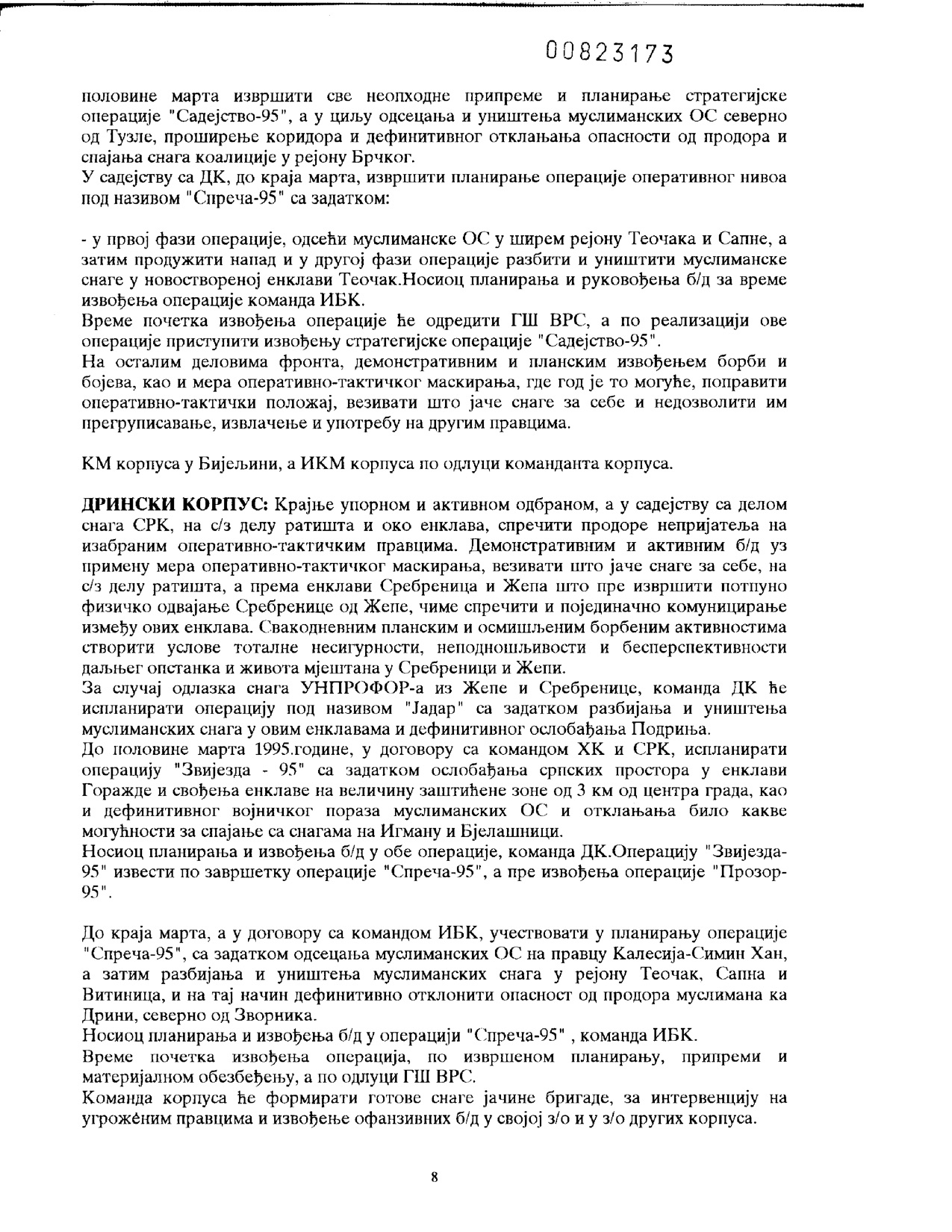 "Cilj dejstva: iznenadnim napadom potpuno razdvojiti i suziti enklave Srebrenica i Žepa, popraviti taktički položaj snaga u dubini zone i stvoriti uslove za eliminisanje enklava."