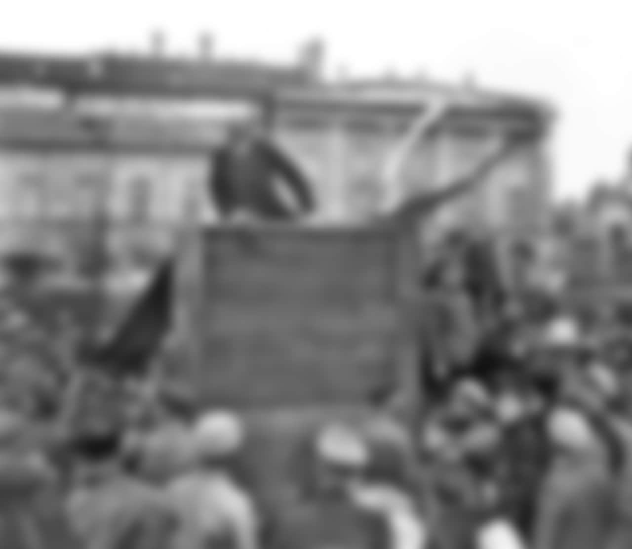Lenjin govori u centru Moskve. Do 1918. revolucija se transformisala u građanski rat između Lenjinovih 'crvenih' boljševika i snaga poznatih kao 'beli'. Nasilje u Rusiji je tek počelo.
